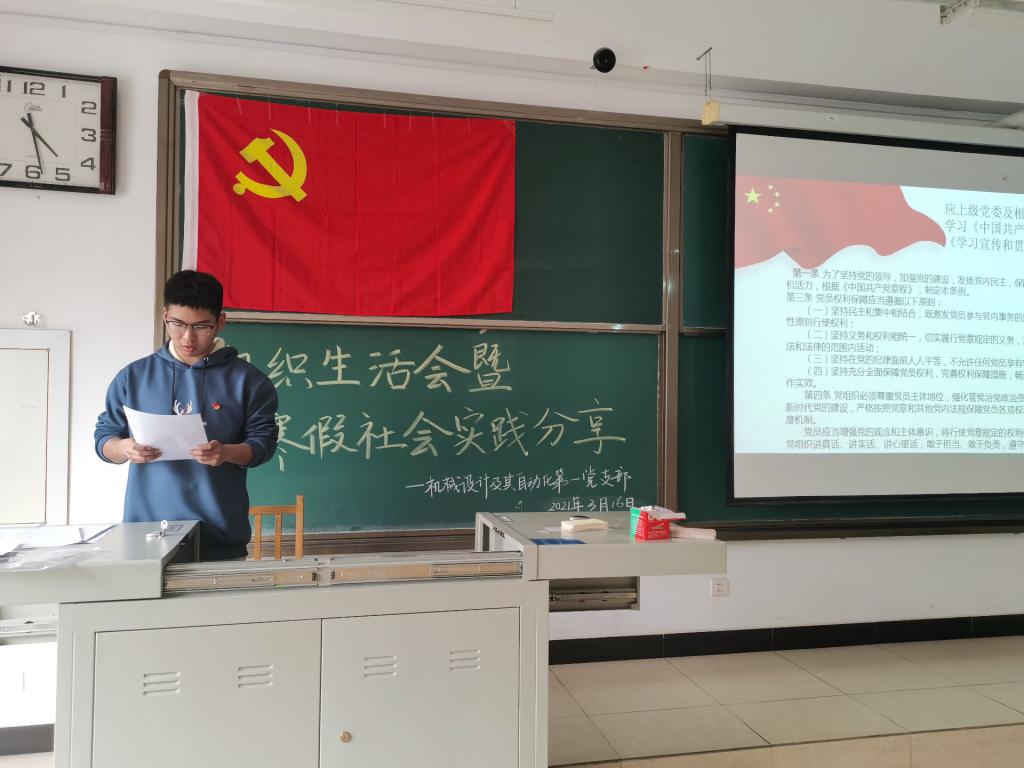 2021年3月16日下午4时,机械设计制造及自动化第一学生党支部于教学楼15301进行了组织生活会,支部书记李红丹和支部全体党员参加会议,活动由机械设计制造及自动化第一学生党支部支部副书记陈一平主持。